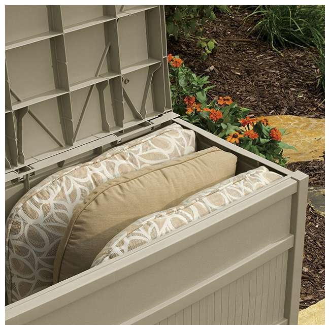 The suncast 99 gallon dbw9200 is a very nice deck box that his a good price point, and is attractive enough to be seen along with patio furniture. Deck box bmdb9900 is a quality resin storage box perfect for a small backyard. Suncast db7000w outdoor accessories storage box. For maximum security, it is lockable with a padlock to safeguard your property. Ideal storage for cushions, pool toys, grill and upgrade your outdoor storage and organization with the suncast 99 gallon deck box.
